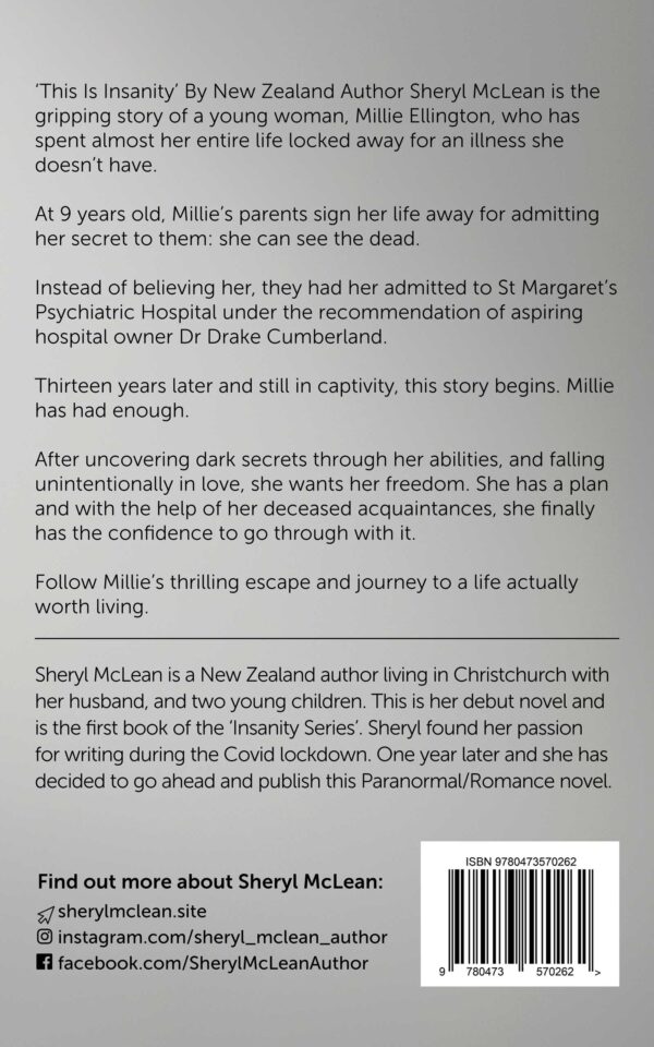 The gripping story of a young woman Millie Ellington. Who has spent almost her entire life locked away for an illness she does not have. At nine years old, her parents sign her life away for admitting her secret to them. She can see the dead. Instead of believing her, they had her admitted to St Margaret’s Psychiatric Hospital under the recommendation of aspiring hospital owner Dr Drake Cumberland. Thirteen years later and still in captivity, this story begins. Millie has had enough. After Uncovering dark secrets through her abilities and falling unintentionally in love. She wants her freedom and has a plan. With the help of her deceased acquaintances, finally, Millie has the confidence to go through with it. Follow her thrilling escape and journey to a life worth living.